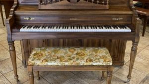institutional Quality with extra features. Great tone and touch. Casters allow for easy movement. Extra long music desk great for large scores. Matching Bench included. Locking top and fallboard.